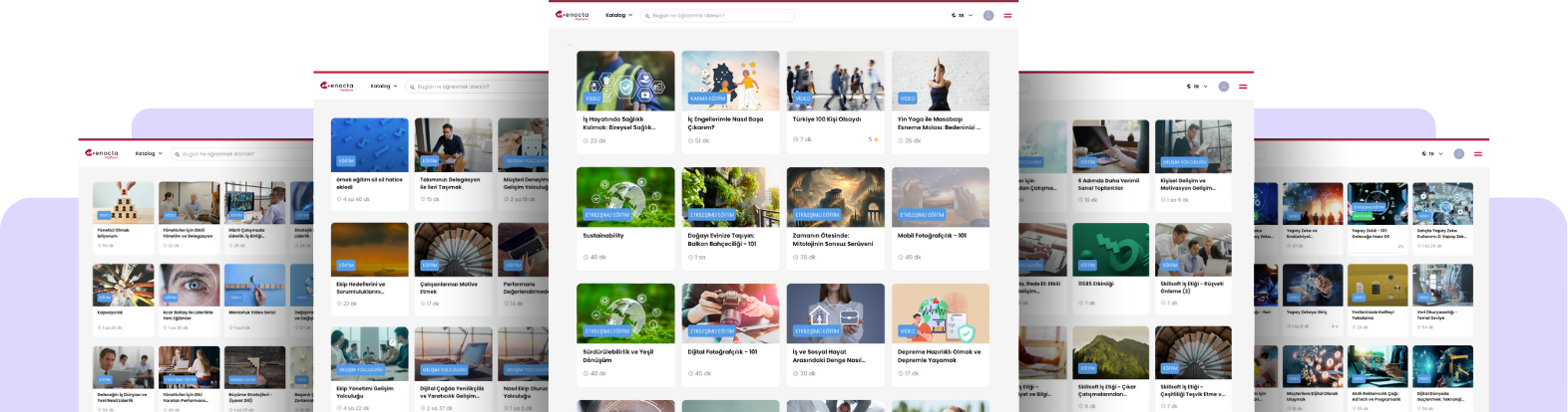 Enocta Katalog, modern iş dünyasının en büyük ihtiyacı olan, değişime hızla adapte olabilen çalışanların gelişimi için doğrudan öğrenme çözümleri sunar. Yapay zeka desteğiyle üretilen ve yapay zekaya yönelik içeriklere sahip bu kapsamlı kütüphane, çalışanlara özgür ve güvenilir bir gelişim kaynağı sağlar. Hibrit kurgular, ücretsiz webinarlar ve oyunlaştırma gibi motivasyonu artıran araçlarla öğrenme kültürünü canlı tutar.