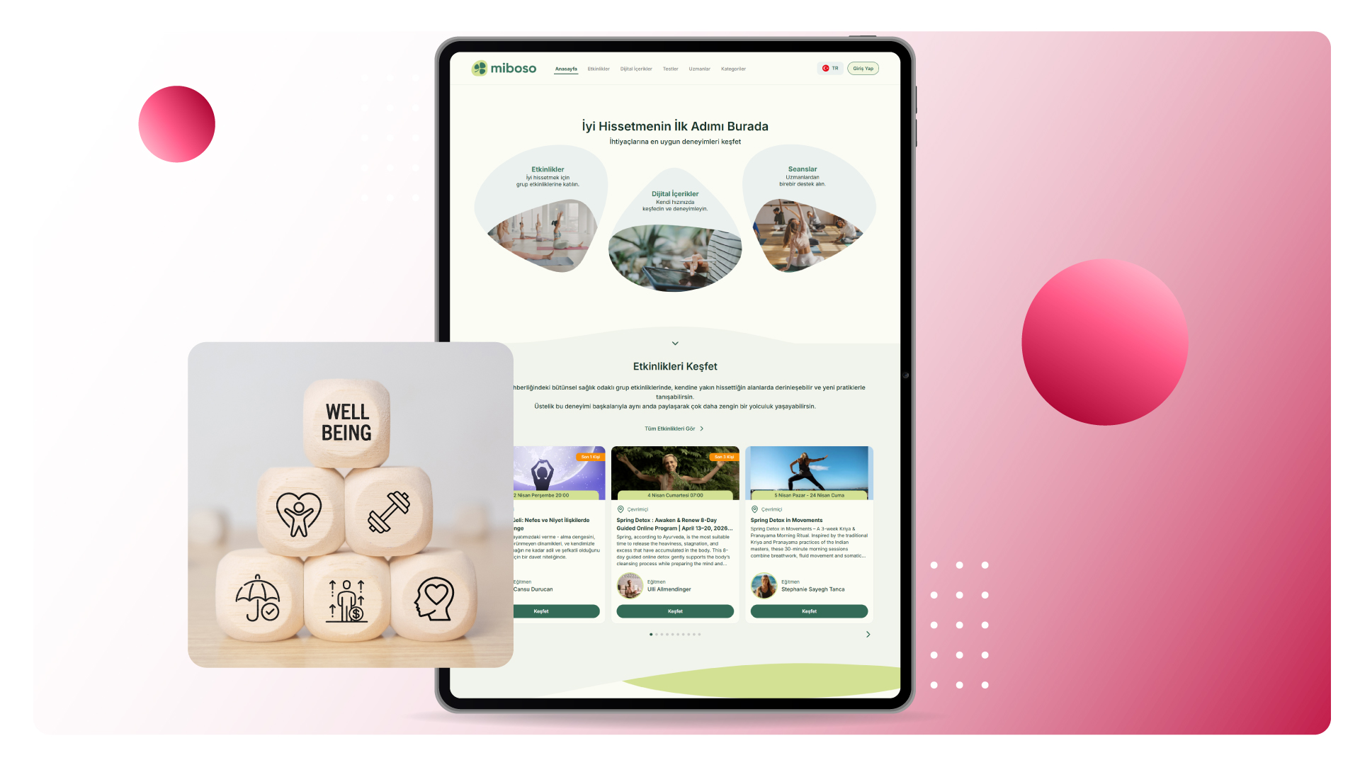 Miboso, sağlık ve esenlik alanındaki en iyi uzmanları kurumunuzla buluşturur; deneyimleri kurum hedeflerinize ve kültürünüze göre tasarlar, uygular ve etkisini görünür kılar.