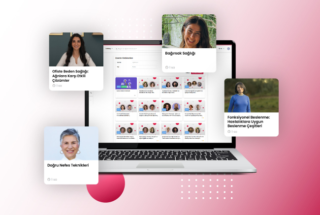 Örnek: Stres Yönetimi & Dayanıklılık - "Resilience: 6 Haftalık Dayanıklılık Programı" (6 hafta). Dr. İhsan Yelkencioğlu (Mindfulness), Dr. Neslihan İskit (Nefes), Müjde Mısırlı (Yoga), Prof. Dr. Nazan Uysal Harzadın (Beslenme & Fonksiyonel Tip). Kazanım: Stresin temelleri, bedenle bağ, duygu düzenleme, uyku & enerji, günlük regülasyon ve sürdürme modülleriyle pratik stres yönetimi.