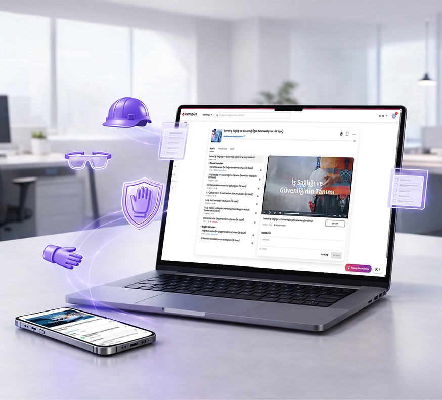 • Mevcut içeriklerin yanı sıra; risk sınıfınıza, kurum kültürünüze ve saha pratiklerinize özel tasarlanmış içerikler edinebilir,